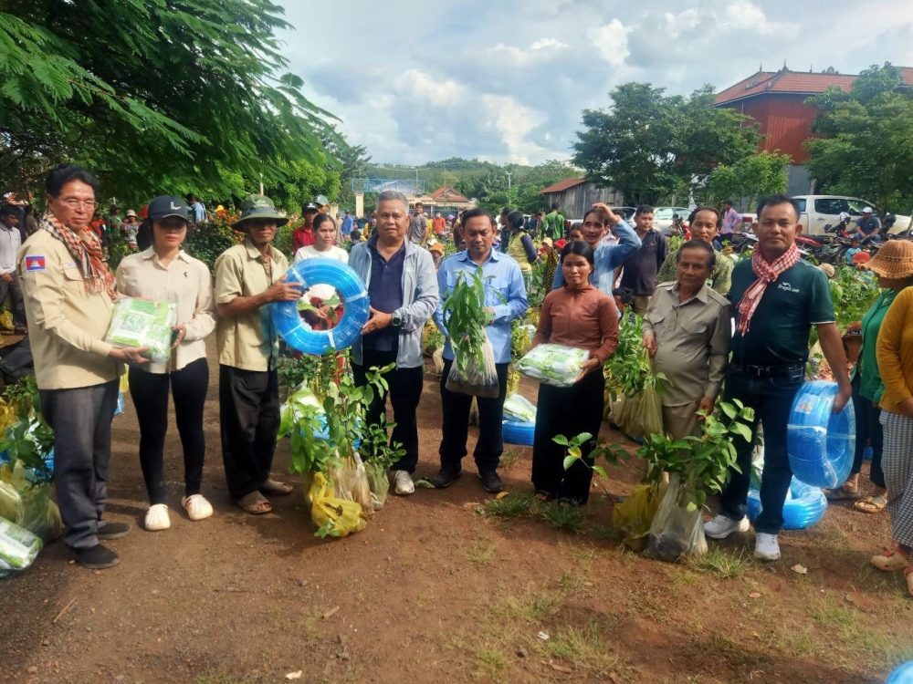 ក្នុងពិធីចែកសម្ភារៈ មានការចូលរួមពីអាជ្ញាធរមូលដ្ឋាន និងមន្ត្រីកសិកម្មឃុំ ដោយមានគោលបំណងជំរុញការអភិវឌ្ឍជីវភាព និងកសិកម្មបៃតងក្នុងសហគមន៍។ សម្ភារៈដែលគ្រួសារទទួលបាន រួមមានគ្រាប់ពូជបន្លែ និងកូនឈើហូបផ្លែ ដូចជា៖