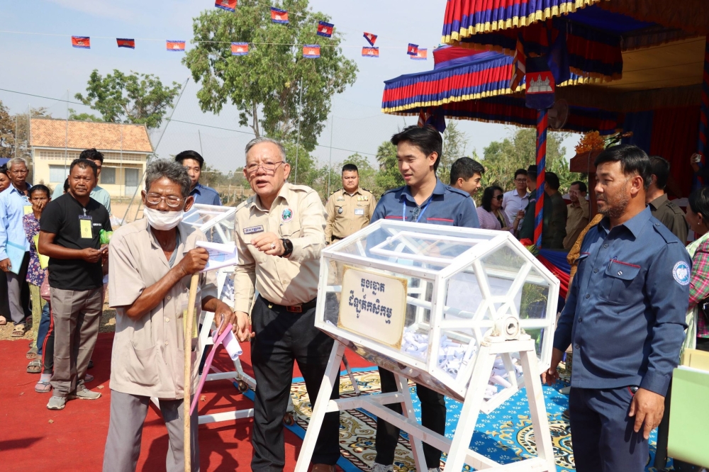 នាព្រឹកថ្ងៃទី ១២ ខែកុម្ភៈ ឆ្នាំ២០២៦ ឯកឧត្តម ហ៊ាន វណ្ណហន រដ្ឋលេខាធិការក្រសួងកសិកម្ម រុក្ខាប្រមាញ់ និងនេសាទ និងជាសមាជិកគណៈកម្មការដឹកនាំគម្រោង LASED III និង ឯកឧត្តម ឃី កុសល អនុរដ្ឋលេខាធិការក្រសួងកសិកម្ម រុក្ខាប្រមាញ់ និងនេសាទ និងជានាយកផ្នែកកសិកម្ម នៃគម្រោង LASED III បានចូលរួមក្នុងពិធីចាប់ឆ្នោតជ្រើសរើសយកដីទ្បូត៏លំនៅឋាន និងដីទ្បូត៏កសិកម្ម នៃកម្មវិធីសម្បទានដីសង្គមកិច្ចថ្នាក់មូលដ្ឋានគម្រោងបែងចែកដីដើម្បីសង្គមកិច្ច និងការអភិវឌ្ឍសេដ្ឋកិច្ច ដំណាក់កាលទី៣ (LASED III) ស្ថិតនៅឃុំព្រះផុស ស្រុកគាស់ក្រទ្ប ខេត្តបាត់ដំបង ក្រោមអធិបតីភាព ឯកឧត្តម សូខន ឬទ្ធីគុណ រដ្ឋលេខាធិការ និងជាប្រធានគណៈកម្មការដឹកនាំគម្រោង LASED III តំណាងដ៏ខ្ពង់ខ្ពស់ ឯកឧត្តម សាយ សំអាល់ ឧបនាយករដ្ឋមន្រ្តី ក្រសួងរៀបចំដែនដី នគរូបនីយកម្ម និងសំណង់ ឯកឧត្តម ពិន ប្រាកដ អភិបាលរងខេត្ត តំណាងឯកឧត្តមអភិបាលខេត្តបាត់ដំបង លោកស្រីចំរើន មុទិតា ប្រធានក្រុមការងារគម្រោងLASEDIII នៃធនាគារពិភពលោកប្រចាំកម្ពុជា និងមានការចូលរួមពី ក្រុមការងារគម្រោងថ្នាក់ជាតិ និងថ្នាក់ខេត្តនៃក្រសួងរៀបចំដែនដី នគរូបនីយកម្ម និងសំណង់ និងក្រសួងកសិកម្ម រុក្ខាប្រមាញ់ និងនេសាទ មន្រ្តីពាក់ព័ន្ធ ព្រមទាំងមានការចូលរួមពីប្រជាពលរដ្ឋជាសម្បទានិកចំនួន៥០៨នាក់។