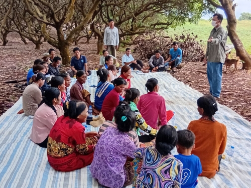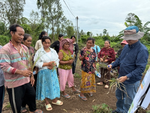 ដំណើរការសាលារៀនស្រែកសិករអំពីផលិតកម្មដំណាំស្រូវដល់ក្រុមផលិតកម្មដំណាំស្រូវ (ការប្រើជីទ្រាប់បាត,ការបាចជីបំប៉នលើកទី១,២ ការថែទាំ និងការគ្រប់គ្រងទឹកក្នុងស្រែ)